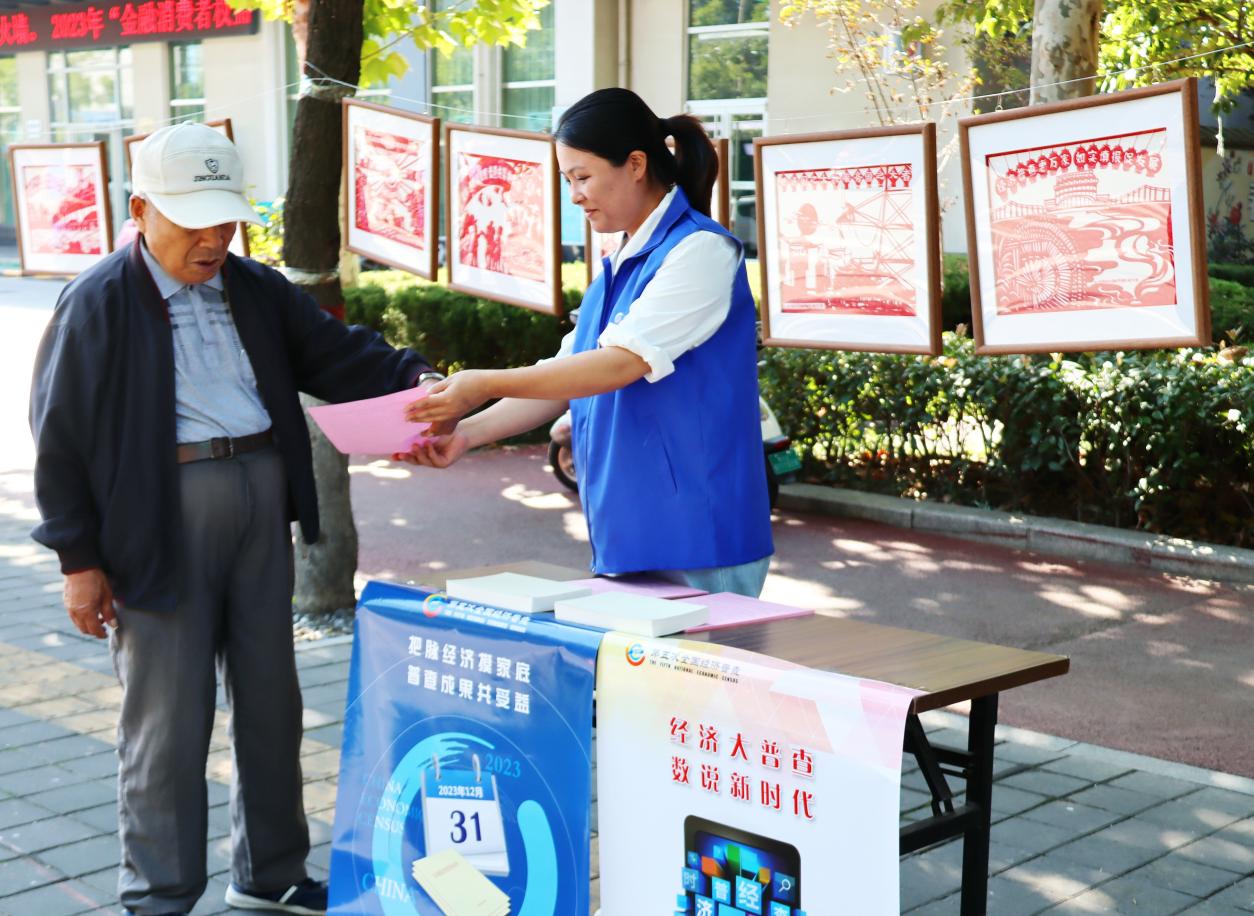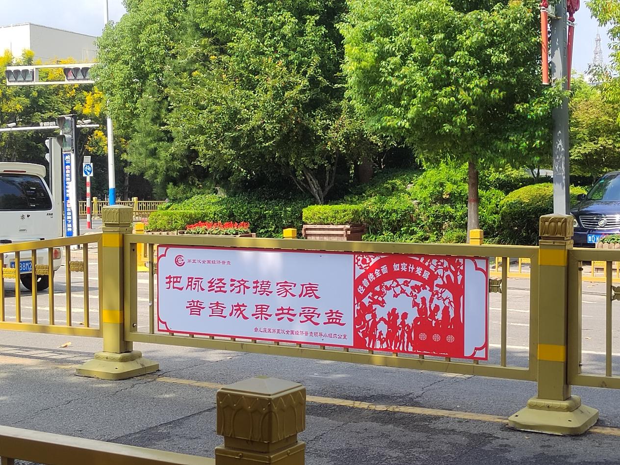 线下营造普查氛围。制作五经普宣传展板,在人口聚集的广场,通过发放统计资料和“一对一”讲解的方式,让群众进一步了解经济普查、认识统计、支持统计,发放相关资料500余份,持续提高广大群众对经济普查的认识。在全区范围内悬挂横幅、张贴五经普宣传海报,城区主要干道十字路口、经济普查成员单位、政务服务大厅、加油站、商超、宾馆等场所设置五经普LED宣传标语100余条,在村务公务栏、社区显要位置张贴五经普宣传海报800余份。城区13辆洒水车全部贴上五经普标语口号车贴、循环展播经济普查语音广播。在城区主要干道的马路护栏上悬挂剪纸画宣传展板150余个,制作同系列剪纸画宣传海报在城区20余个社区售水机上张贴,将五经普的宣传深入百姓身边,在八条城区干道十字路口的路名牌上张贴五经普宣传海报30余张,建设中的建筑物围栏张贴大幅宣传海报,营造浓郁普查氛围。